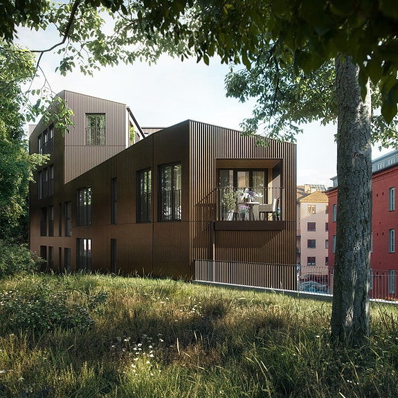 Midt på Bislett i Oslo utvikler Veslefrikk og Bunde Eiendom boligprosjektet Thereses gate 31, tegnet av Tuvalu arkitekter. Leiligheter og byhus veves inn i de gamle, verneverdige fabrikkbygningene, og resultatet blir 27 nye hjem i hjertet av Oslo. Her kan vi kjenne duften av nykvernet kaffe, handle i nydelige nabolagsbutikker og ta trikken hele veien hjem.