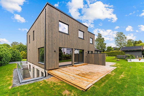 Sagaveien 23 ligger på en attraktiv og skjermet eiendom i sentrumskjernen av Ås. Her har du mye boltreplass utendørs, med terrasseplatting og hage med gressplen. Fra stuen er det utgang til terrasse på ca. 28 kvm, med videre adkomst til boligens hage.