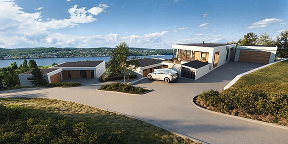 Helt skjermet for innsyn. Prosjektet harmonerer meget godt med omgivelsene og eneboligenes naturlige plassering i terrenget er gitt en formasjon som optimaliserer lys, sol og utsikt til hver enkelt bolig. Følelsen av kvalitet og varighet har gjennomgående vært viktig i valg av materialer og løsninger - både innvendig og utvendig.