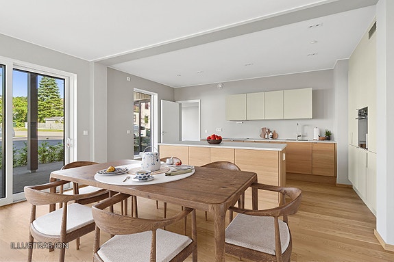 Kjøkken fra Svane (møblene er illustrert inn i bildet)