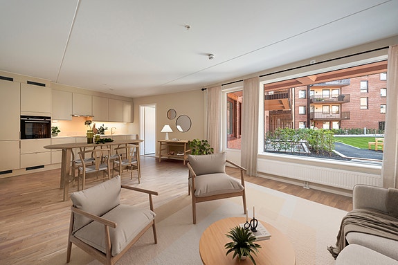 - Sydvendt hjørneleilighet med markterrasse på 11 kvm