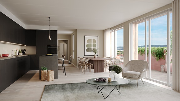 Leilighet 106-H1104 kan friste med vidstrakt utsikt og flotte lysforhold. Illustrasjon fra 106-H1204, avvik kan forekomme.