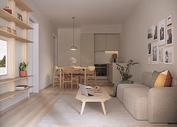 I Timbre finner du komfortable leiligheter i mange varianter, så du kan enkelt velge den som passer best for deg. Den gode følelsen av et helt nytt hjem møter deg allerede ved inngangsdøren alt er splitter nytt, og du slipper å bruke tid og ressurser på vedlikehold. Leilighetene har store vinduer som gir mye lys og gjennomtenkte planløsninger. Gjennomarbeidede plan- og interiørløsninger og funksjonelle rom skaper et moderne og innbydende hjem.