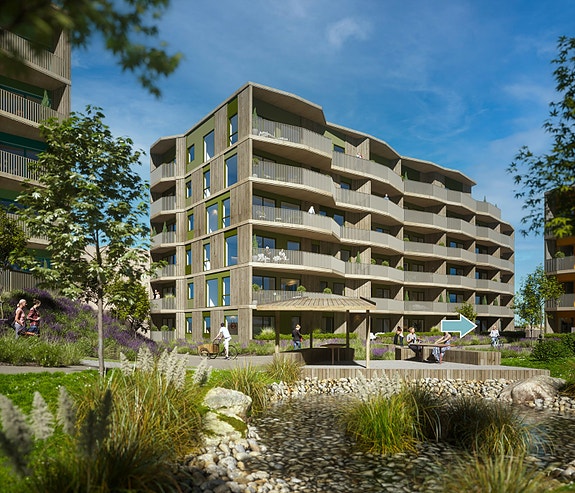 Sjøhagen får fasader i tre, av viktige grunner: Tre er en fornybar ressurs med gode miljøegenskaper, og er derfor et viktig byggemateriale i det grønne skiftet. Blant fordelene er lavt energiforbruk i produksjon og lavt CO2-fotavtrykk per produsert enhet. Viktig å tenke på for deg som skal velge sted å bo, og viktig for oss når vi utvikler boligprosjekter. For oss er det også verdifullt at trefasadene bidrar til å skape en god, naturlig atmosfære i Sjøhagens fellesområde. Ingen alternative fasadematerialer gir de samme positive følelsene som tre det mener hvert fall vi.