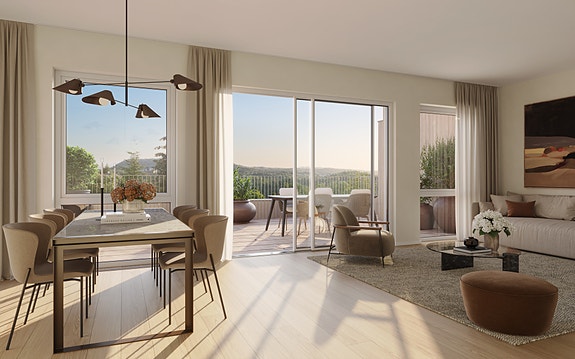 Leilighet K6-402 er en av to leiligheter som troner på toppen av bygg K6. Dette er en av prosjektets aller flotteste beliggenheter, med en utsikt man sjeldent opplever maken til. Her er du usjenert - både innendørs og når du oppholder deg på den private takterrassen. Leiligheten ligger med yttervegger mot øst, vest og nord, med terrasse som strekker seg langs vest- og nordsiden av leiligheten. Her ligger alt til rette for å nyte enhver finværsdag.
