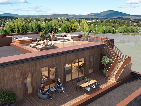 Sjelden mulighet! Meget tiltalende 4-roms med store vindusflater | Takterrasser på til sammen 100 m² | 2 garasjeplasser