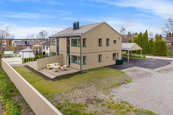 Innholdsrik tomannsbolig under oppføring i moderne stil, med store vindusflater og fasade i lyst treverk. Praktisk planløsning, god kvalitet på håndverk og materialer samt solrik uteplass, er noen av nøkkelegenskapene denne boligen kan by på. Boligen er ferdigstilt og kan overtas omgående. Den ene halvparten av tomannsboligen er allerede solgt. Det skal også bygges en ny enebolig på tomten. Boligene er arkitekttegnet av Idéhus, og bygges av Zeiner Bolig håndverk.