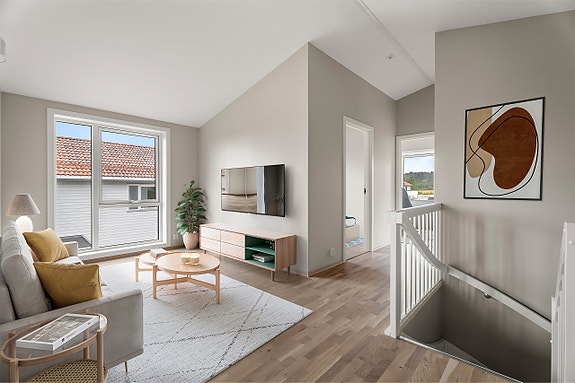 - Lys og romslig stue med store vindusflater