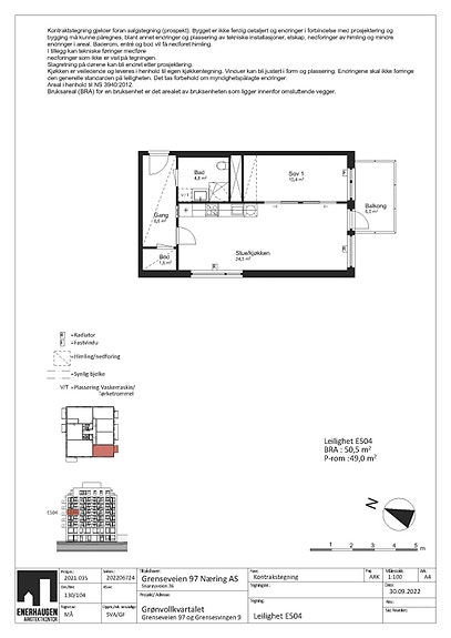Salgsobjektet er leilighet E504 i Grønvollkvartalet bygg E.