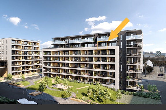 EiendomsMegler 1 har gleden av å presentere en nydelig og romslig 2-roms leilighet i byggets 6. etasje. Leiligheten er under oppføring, og har estimert innflytting fjerde kvartal i år!