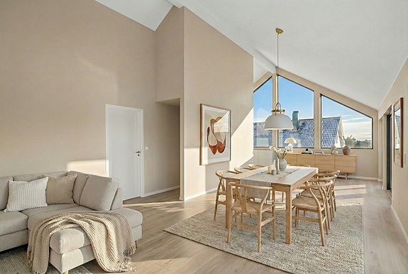 En stilren og moderne familiebolig med gjennomtenkte materialvalg og delikate farger! Her er det lagt vekt på både funksjonalitet og estetikk - alt er nøye utvalgt for å skape en praktisk og komfortabel hverdag.