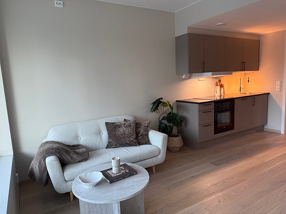 Bildet av stue/kjøkken tatt fra en tilsvarende leilighet i prosjektet.