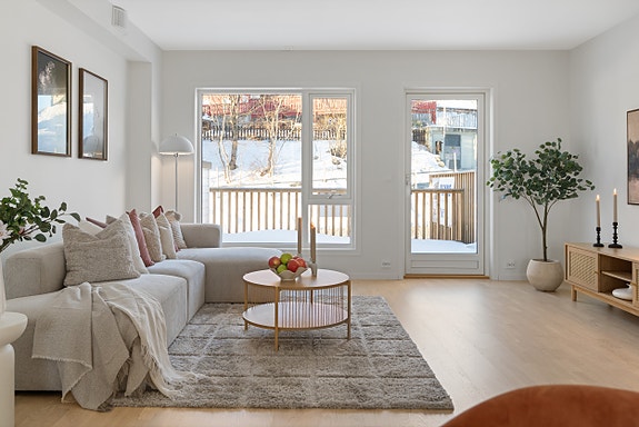 Her får du en bolig med en fantastisk utsikt, store gode uteplasser og barnevennlig beliggenhet.