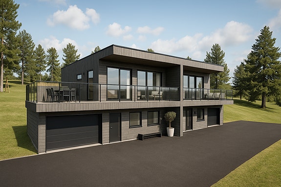 - Alu kledning utvendig og trevinduer innvendig med valgfri farge på karmer innvendig. Svarte vindu utvendig (farge på innvendig vindu kan endres frem til 5 jan)
