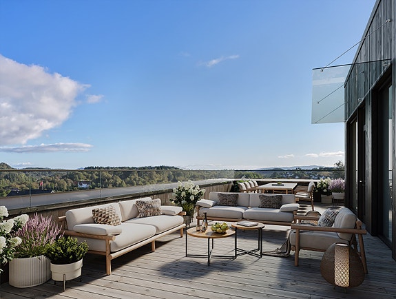 Eksklusiv 4-roms toppleilighet med to takterrasser på 67 og 13 kvm - meget gode solforhold! Innflytting 3. kvartal 26!