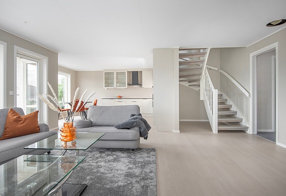 Flott og innholdsrik tomannsbolig med sørvendt utsikt. 3 soverom og 2 stuer. Mulighet for tilpasninger for kjøper.