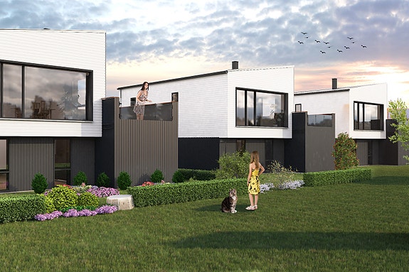Velkommen til et nytt nabolag bestående av seks moderne eneboliger, hver på sin egen tomt, med god plass både ute og inne. Her får du et hjem som kombinerer moderne uttrykk med funksjonelle løsninger og behagelige rom. De åpne planløsningene og store vindusflatene slipper lyset inn og skaper en lun og innbydende atmosfære.