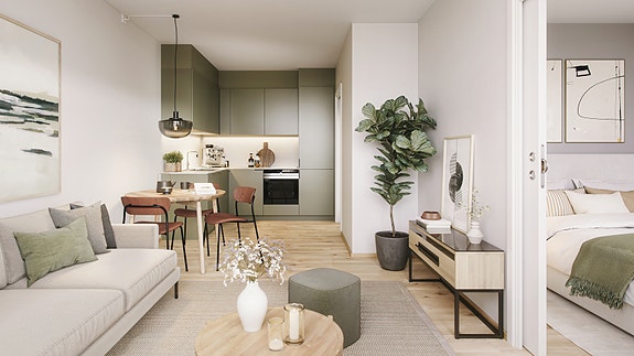EiendomsMegler 1 v/ Silje Solem har gleden av å presentere en ny og moderne leilighet i et flott prosjekt med høy standard, smarte løsninger og god bokomfort. Leiligheten nyter en praktisk planløsning med en flislagt entrè med plass til garderobeløsning, soverom av god størrelse og en åpen stue- kjøkkenløsning med utgang til en flott balkong.