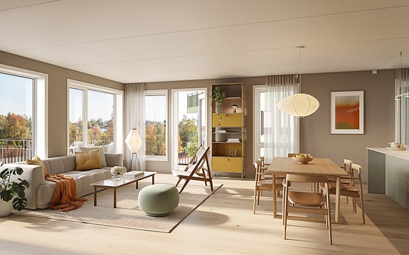 Her er det lagt vekt på god kvalitet i leilighetene med varme og delikate farger og materialer. Kun ment som illustrasjon, avvik kan forekomme.