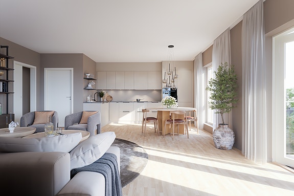 Innglassing av balkonger kan utføres som tilvalg, forutsatt kommunal godkjenning. Utbygger vil beskrive og kreve ensartet type løsning for bygget.
