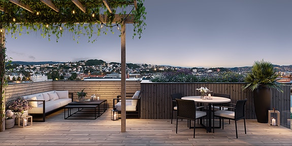 - God takhøyde og romslige uteplasser fra på 20-30 kvm med gode solforhold og utsikt