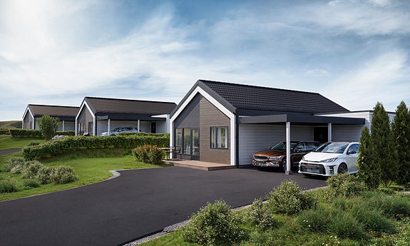 Eneboligene har en praktisk og smart planløsning med tre soverom og en carport, som gir deg muligheten til å gå tørrskodd fra bilen til huset. Her får du en bolig som er enkel å vedlikeholde, samtidig som den gir deg rom for både komfort og en avslappende hverdag.