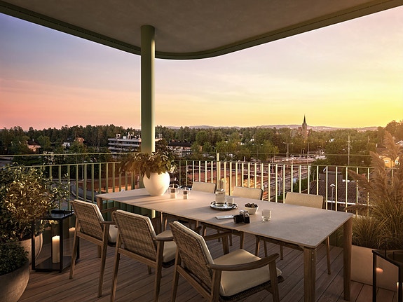 Beboere i bygg C får vedtektsfestet eksklusiv rett til bruk av den felles takterrassen til bygget - her får du en ekstra utestue med flott utsikt og ubegrenset takhøyde.