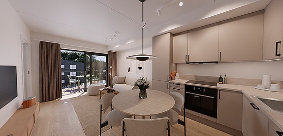 - Åpen og innbydende stue-/kjøkkenløsning på 19,1 m²
