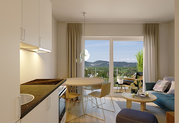 En yippi-leilighet er innredet med fokus på at det skal være både gode planløsninger og mye lys. De fleste boligene i et yippi-bygg har universell utforming og er tegnet for å gi deg mest mulig romfølelse. Med åpne løsninger, store vindusflater, og utgang til egen balkong har du alt du trenger. I tillegg får du en praktisk hverdag med både heis i bygget og leie av parkering i p-kjeller.
