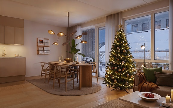 Med kort vei til sjøen og bryggepromenaden ligger alt til rette for å starte dagen med soloppgang over fjorden, nyte ettermiddagssolen og avslutte kvelden i gløden fra solnedgangen. Enten du sitter på balkongen, slapper av på felles takterrasse eller møtes med naboer i de lune uterommene mellom byggene, vil du kjenne på en egen ro.