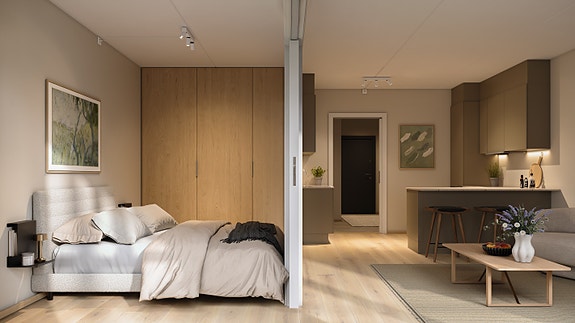Her finner du gjennomtenkte selveierleiligheter fra 2-roms på 38 kvm til toppleilighet på 151 kvm, og selvsagt mange alternativer i mellom. Den enkelte leilighet er nøye planlagt med mål om å skape gode hjem. Planløsningene er gode og effektive med fokus på boligens hjerte, allrommet. Alle leiligheter leveres med et helhetlig interiørkonsept i nordisk stil. Blant annet leveres enstavs eikeparkett, gulvfliser i entré, massivdører, og kjøkken fra HTH med integrerte hvitevarer fra Miele. Ytterligere tilpasninger er mulig i tilvalgsprosessen.