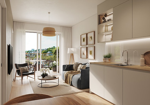 * Åpen stue-/kjøkkenløsning på 28 kvm