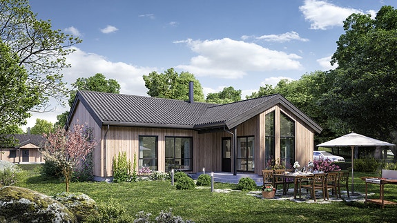 Husmodellen Asti er et moderne vinkelhus hvor alle rom er samlet på ett plan. Huset har et bruksareal på 105 kvadratmeter og har alle rom familien ønsker seg samlet i en etasje.