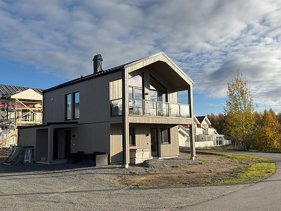 Utvendige arbeider, som opparbeidelse av plen, hekker osv er ikke med i vår pris, men kan selvsagt leveres mot tillegg gjennom våre underleverandører. Jord til plen arealer leveres med.