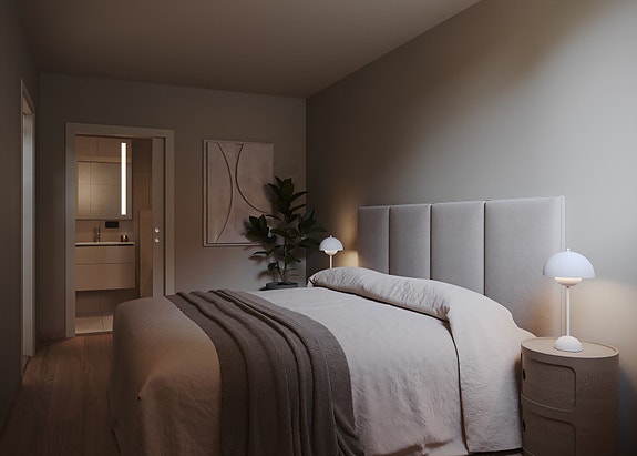 Soverom med eget bad. Bildet er kun ment som en illustrasjon og avvik kan forekomme