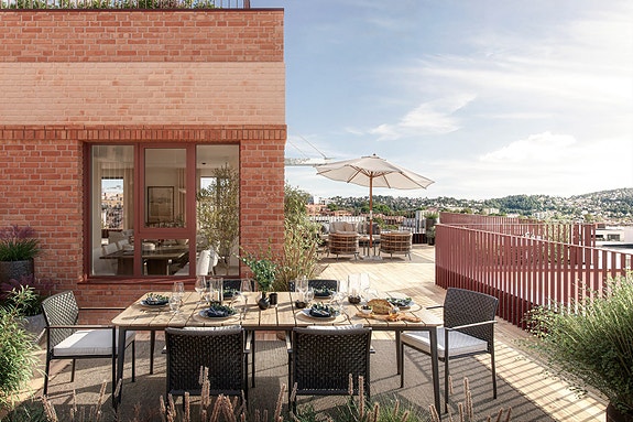 Leilighetene er tegnet med smarte planløsninger, luftige oppholdsrom og nøye utvalgte materialer. Den gode takhøyden sørger for at lyset strømmer fritt inn, og bygningene er planlagt slik at de skaper vakre omgivelser rundt tunet, gårdsrommet og parken. Karnapper og hjørnevinduer gir rikelig med lysinnslipp og utsikt i flere retninger, noe som gir hver leilighet en ekstra dose kvalitet og særpreg. Med direkte tilgang til din egen balkong eller terrasse er det enkelt å nyte frisk luft, og et deilig sted hvor du kan slappe av med en kopp kaffe, dyrke planter, eller nyte et måltid under åpen himmel.