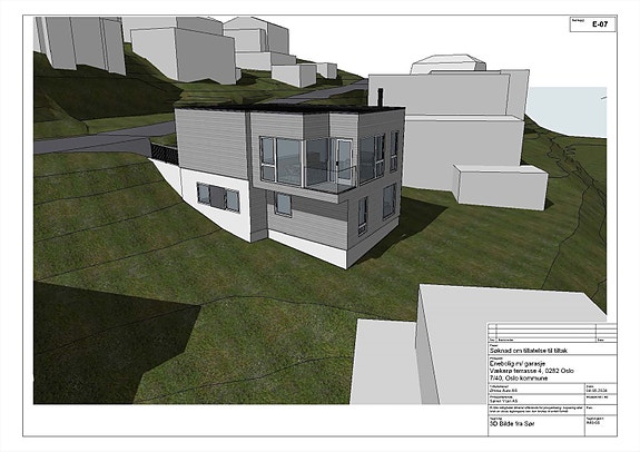 Det vil bli oppført ett nytt bygg på tomten. Eiendommen vil bli seksjonert. Vækerø terrasse 4 er snr 1 og dette VIl bli snr. 2 .