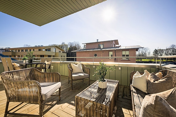3-roms hjørnel. med nydelig beliggenhet. Terrasse på 28 kvm. Mulighet for kjøp av p-plass. Ferdigstilles 16. april.