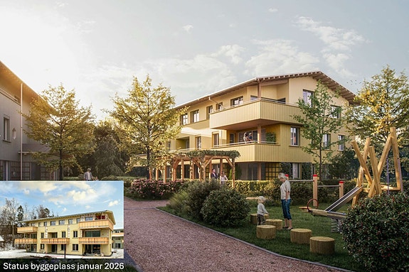 Ny og innbydende 2-roms med åpen stue/kjøkkenløsning. Gressplen og markterrasse på 27 kvm. Ferdigstilles q2 2026.