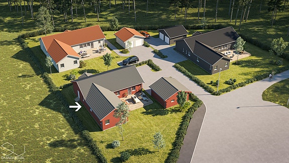 Tomten gjøres klar med tilsådd gressbakke og asfaltert gårdsplass, i tillegg til levering av hekkplanter (se salgsoppgave).