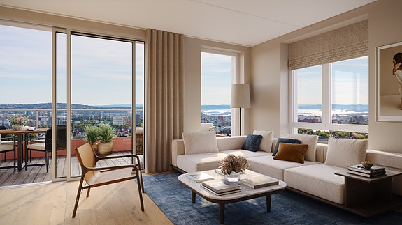 Har du drømt om en romslig og luftig toppleilighet? I Pilar Bjerke er toppleilighetene over 130 kvm og man har fantastisk utsikt i flere retninger fra toppen av tårnet!