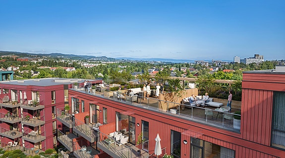 Felles takterrasse med nydelig utsikt og gode solforhold