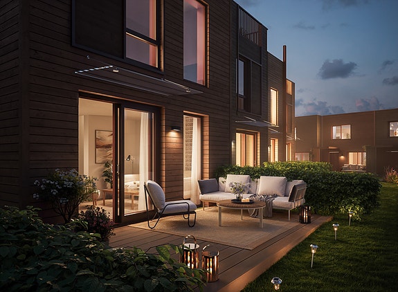 Nye rekkehus som omkranser et koselig felles tun med lekeplass og sosiale soner. Løkeberggrenda består av 58 leiligheter og 28 rekkehus.