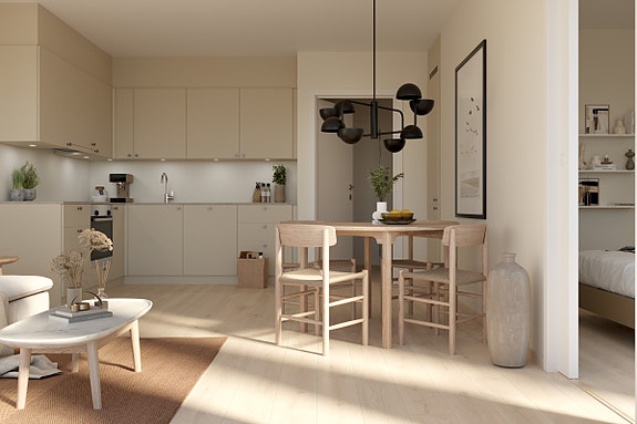Stasjonstunet består av 68 moderne leiligheter og 5 rekkehus et nytt nabolag som kombinerer bokvalitet, smarte løsninger og et variert boligtilbud. Leilighetene og rekkehusene i Stasjonstunet er utformet med fokus på bokvalitet, lys og funksjonelle planløsninger. De rene linjene og den harmoniske fargepaletten skaper et tidløst uttrykk, mens store vindusflater og private uteplasser gir en luftig og behagelig romfølelse. Materialene er valgt med omtanke fra den lyse eikeparketten til de elegante flisene på badet og de små detaljene vitner om solid håndverk og høy standard. Her får du moderne komfort med heis, fjernvarme og balansert ventilasjon, kombinert med energieffektive løsninger og bærekraftige valg. Nedgravde avfallssystemer og garasjeanlegg med elbil-infrastruktur gjør hverdagen enkel og ryddig.