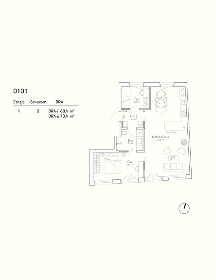 - BRA-i (internt bruksareal): 68,6 kvm