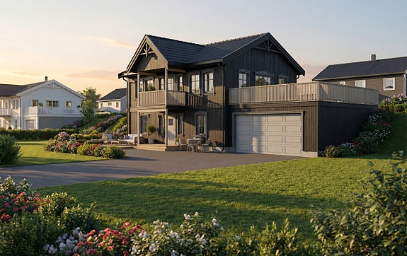 Husmodellen Alvheim kan beskrives som en kompakt enebolig over to fulle etasjer - her kombineres husdrøm med fornuft.