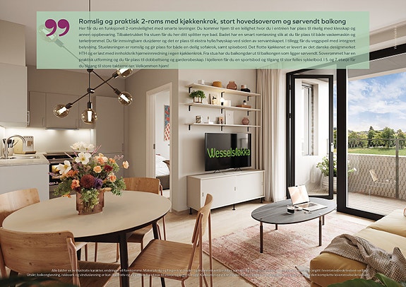 Velkommen til nye Wesselsløkka på Brøset. Her får du en helt ny 2-roms leilighet med en særdeles god planløsning. Balkong i sør.
