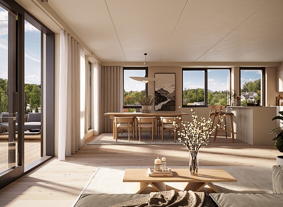 For leilighetene leveres det et interiørkonsept med inspirasjon fra naturens duse omgivelser som gir et innbydende og tidløst nordisk uttrykk.