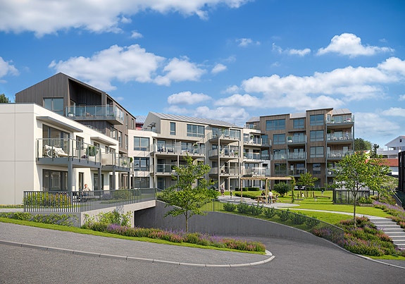 I hjertet av Knarvik bygger Erstad og Lekven Utbygging AS nydelige leiligheter i ulike størrelser. Alle leilighetene får gode solforhold på egen uteplass. Sameiets fellesarealer blir pent opparbeidet med ulike sosiale møteplasser. Kun kr. 100.000,- i forskudd.