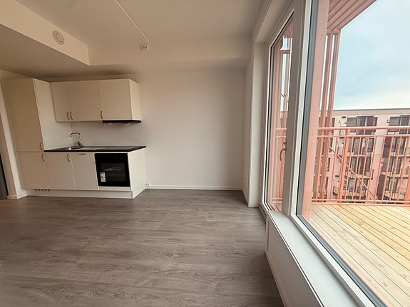 Splitter ny 1-roms selveierleilighet i 7.etg. Innflyttingsklart. Heis. Vannbåren varme. Mulighet for leie av p.plass* -